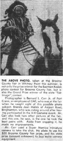 I just found and purchased a used copy of "Fairs USA New York State" pub 1970. No big deal to most, but for me a wonder. (see pictures below.) I almost did not enter the winning picture as my 1st choice was a night shot of the Ferris Wheel and my 2nd a picture of Robin in a yellow kiddy car. Lucky I could have more than one entry. As it happened, I do not have the picture of the Ferris wheel as they kept the picture and the negative was lost. I had made extras of Robin and they returned the original winning photo after it won the State Fair for Best Picture.